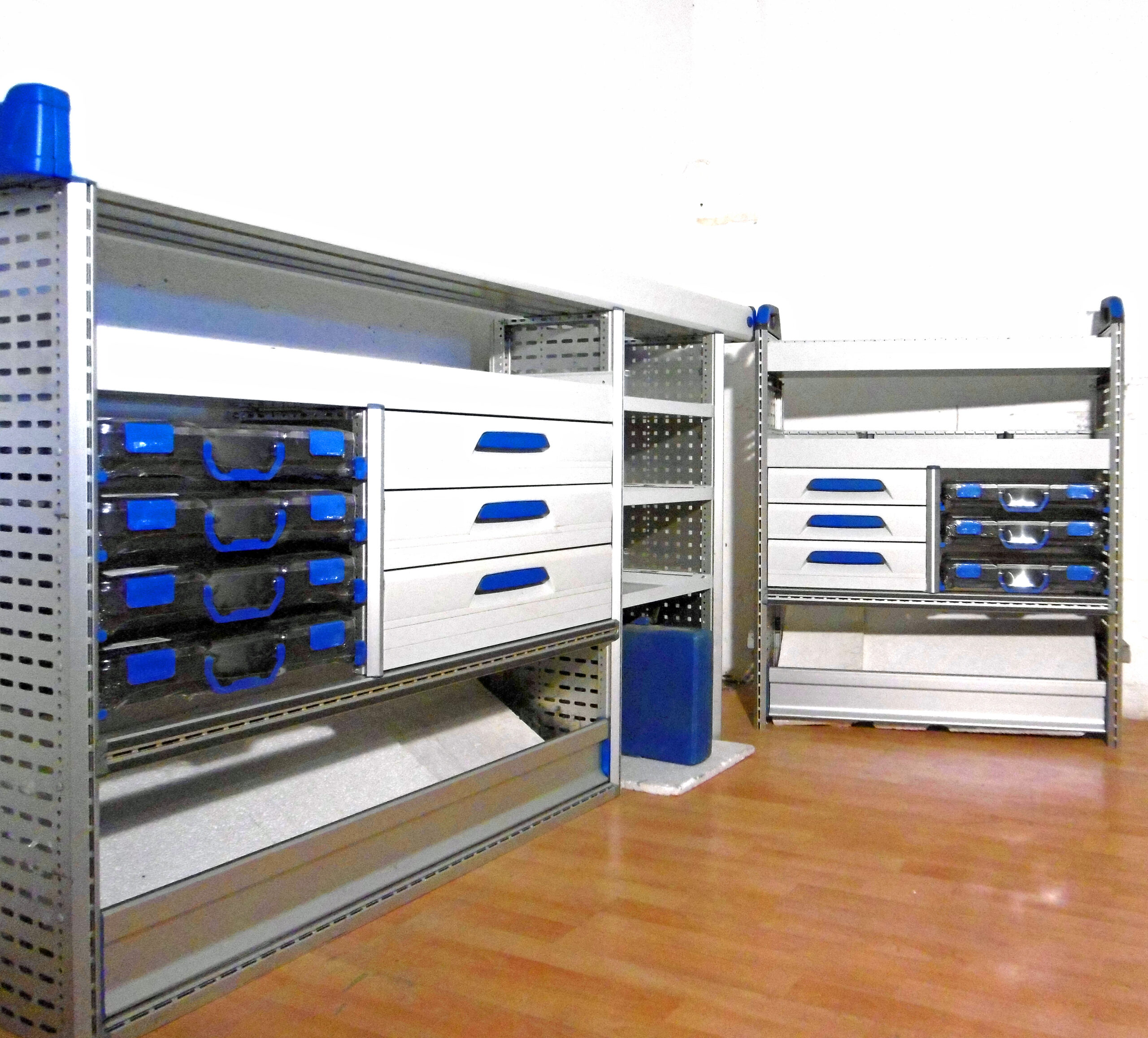 - Bild 1 (rechte Seite): 3 x Schübe, 3 x neue T-Boxx Koffer, div. Trennbleche, unten Klappe