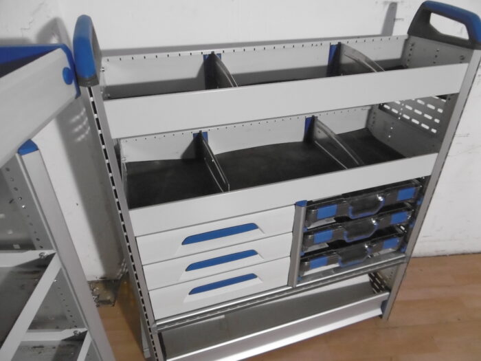 - Bild 1 (linke Seite): 3 x Schübe, 4 x neue T-Boxx Koffer, div. Ablagen, oben Wanne, div. Trennbleche, unten Klappe