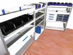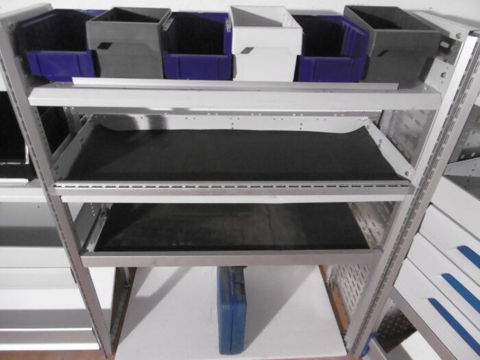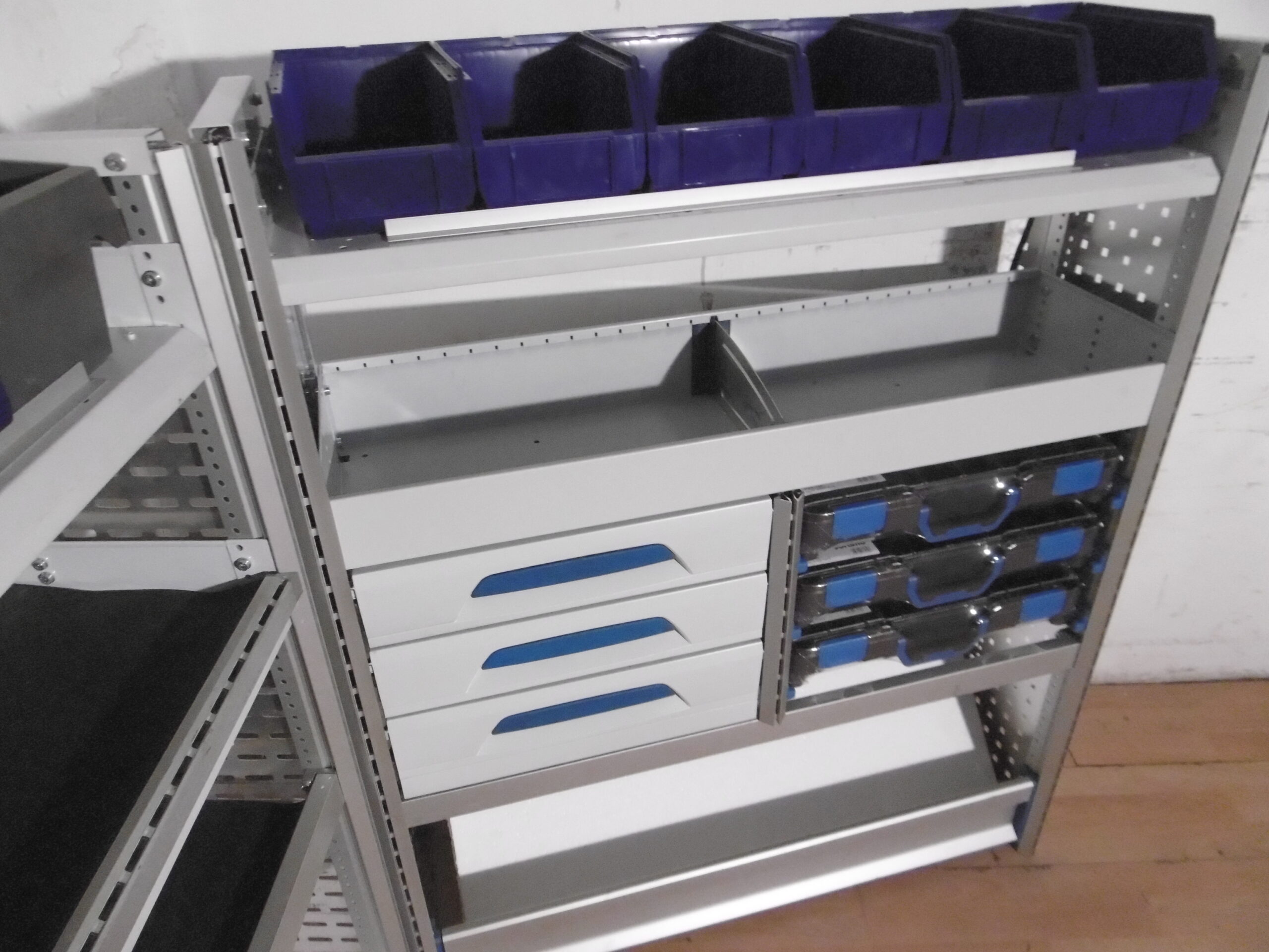 - Bild 1 (rechte Seite): 3 x Schübe, 3 x neue t-Boxx Koffer, oben Ablage, div. Sortierboxen/ Trennbleche, unten Klappe