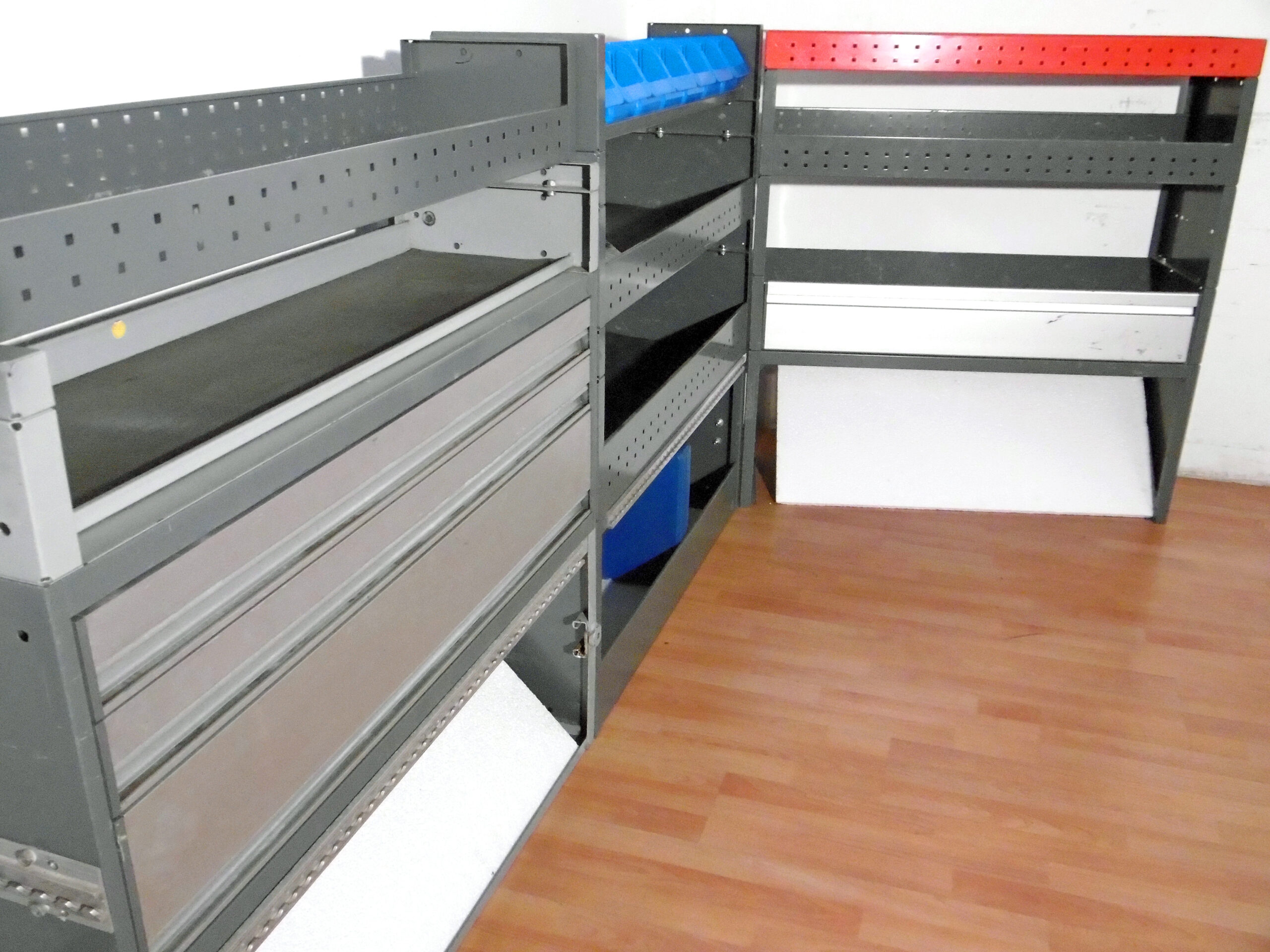 - Bild 1 (rechte Seite): Regal, div. Ablagen auch mit Klappe, div. Trennbleche, unten offen