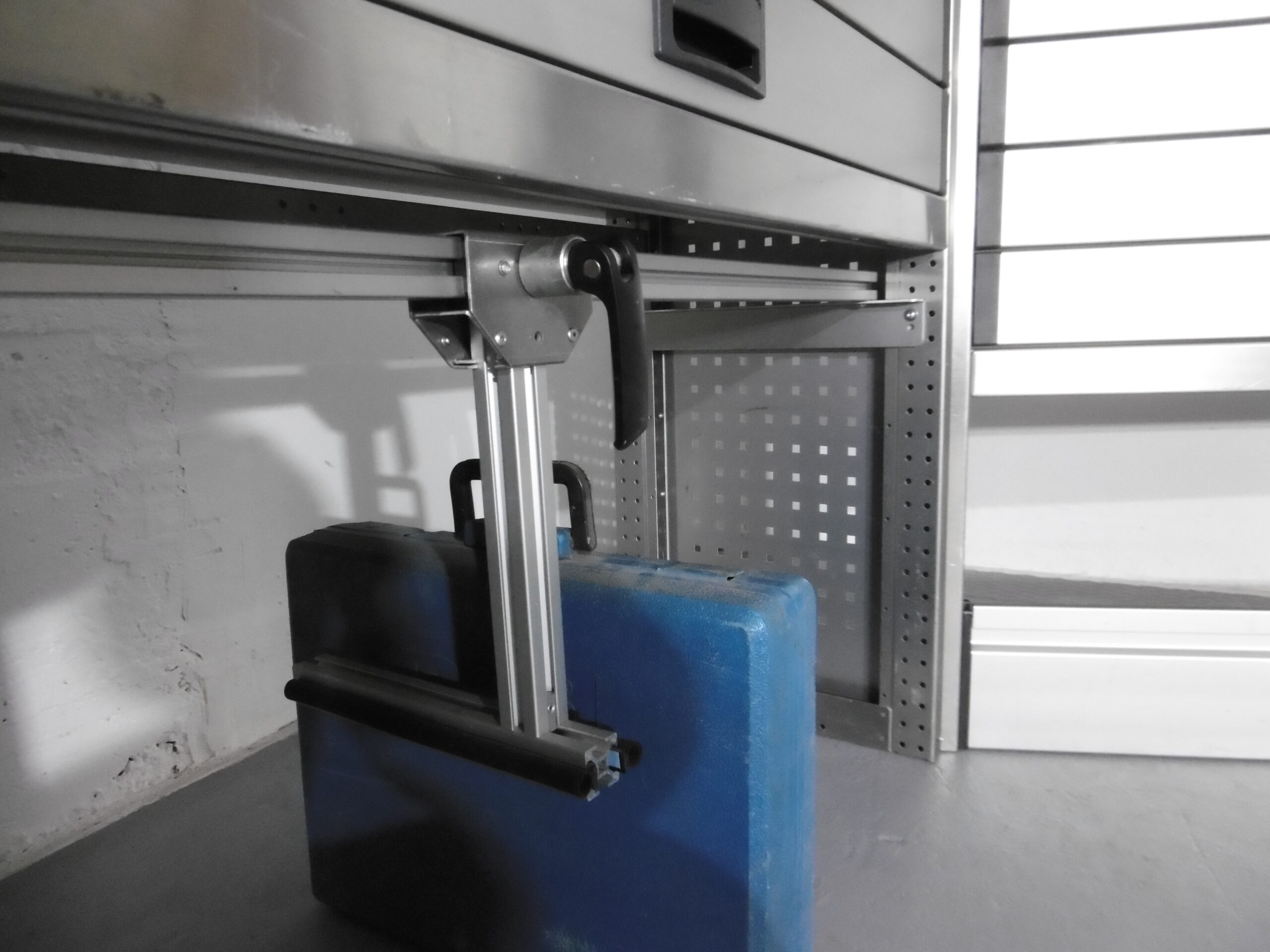 - herunterklappbare Werkbank mit Schraubstock