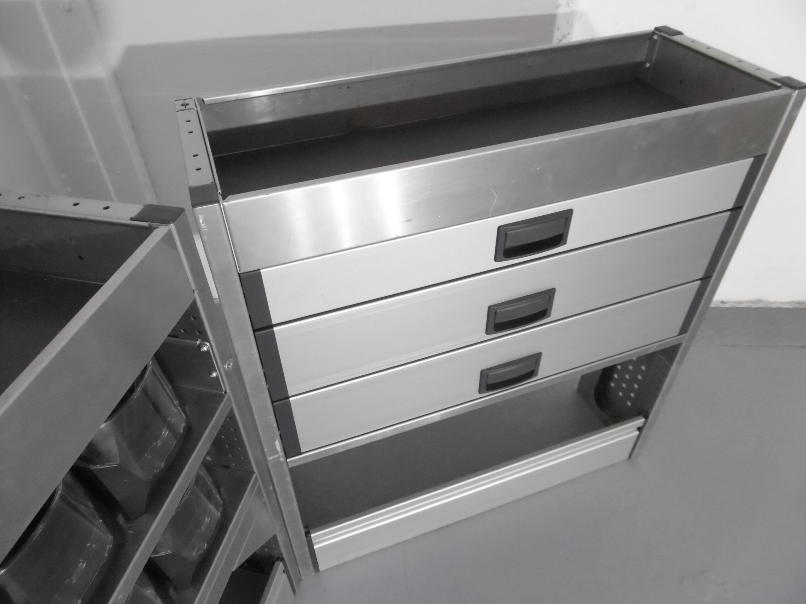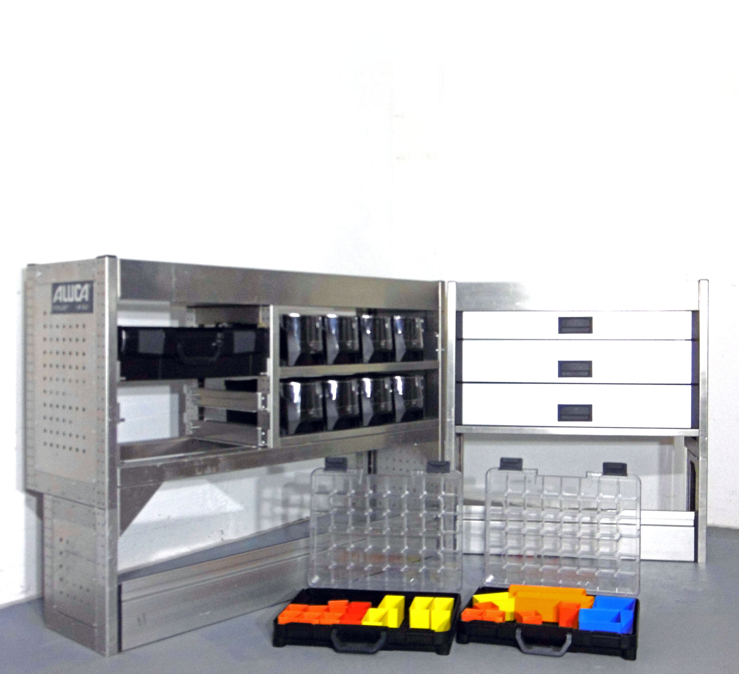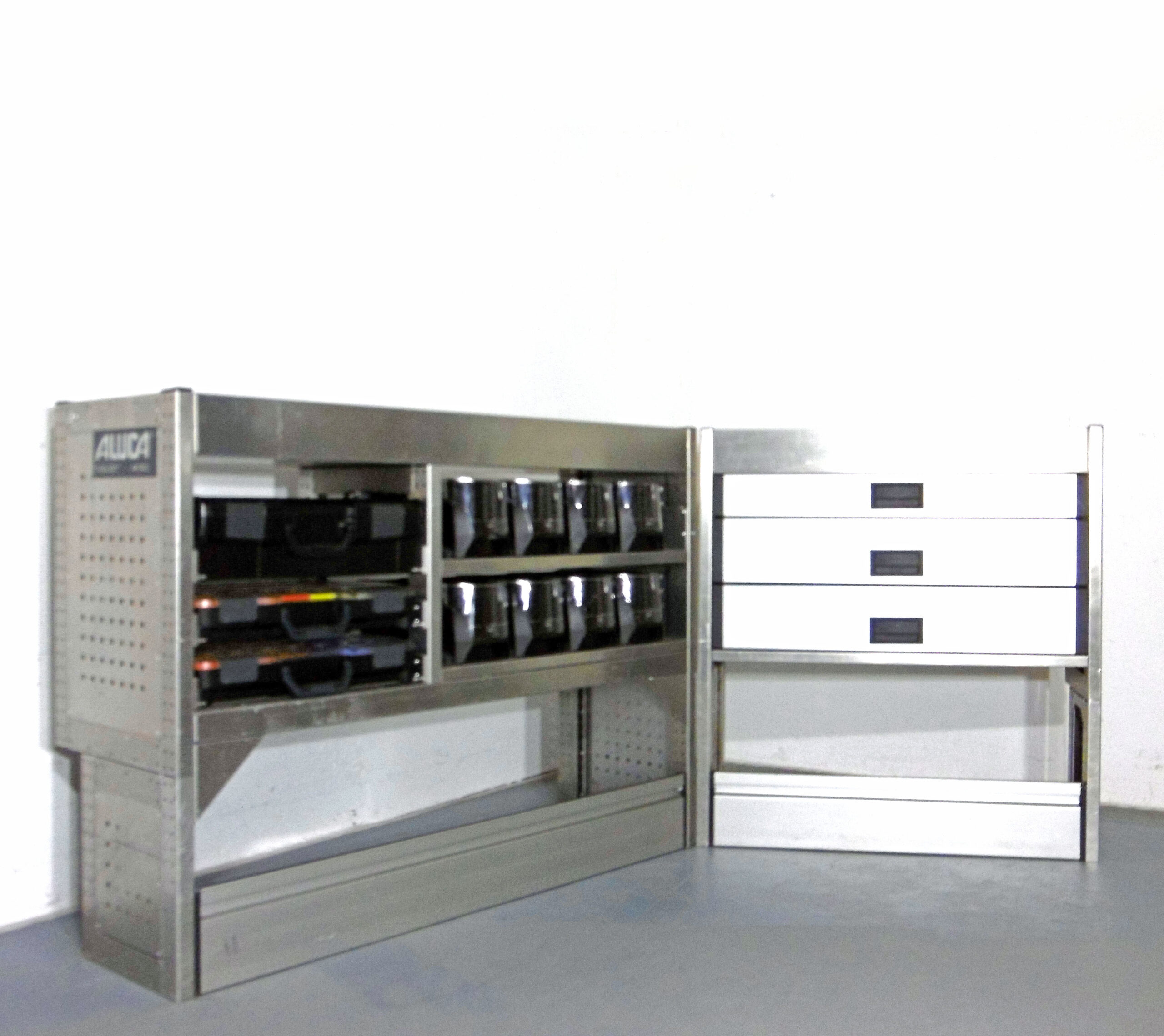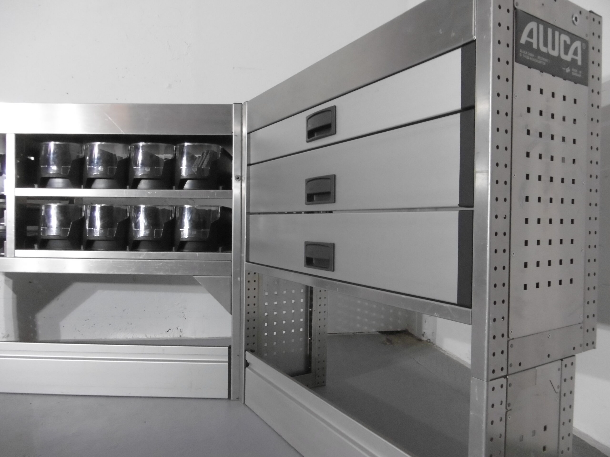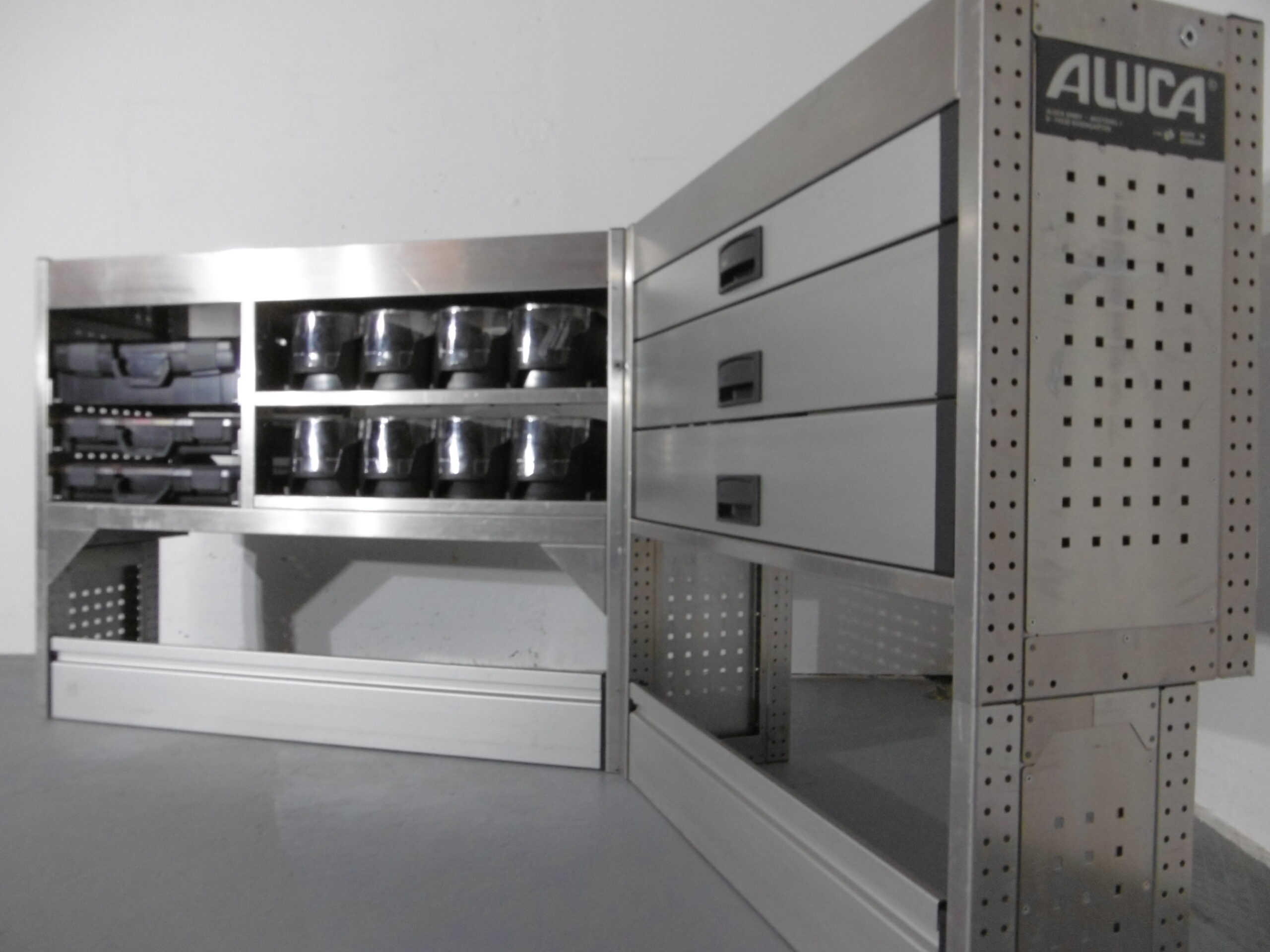 FES GmbH gebrauchte ALUCA Fahrzeugeinrichtung Regal T-Boxx Koffer VW Caddy Custom Vito Transporter Berlin