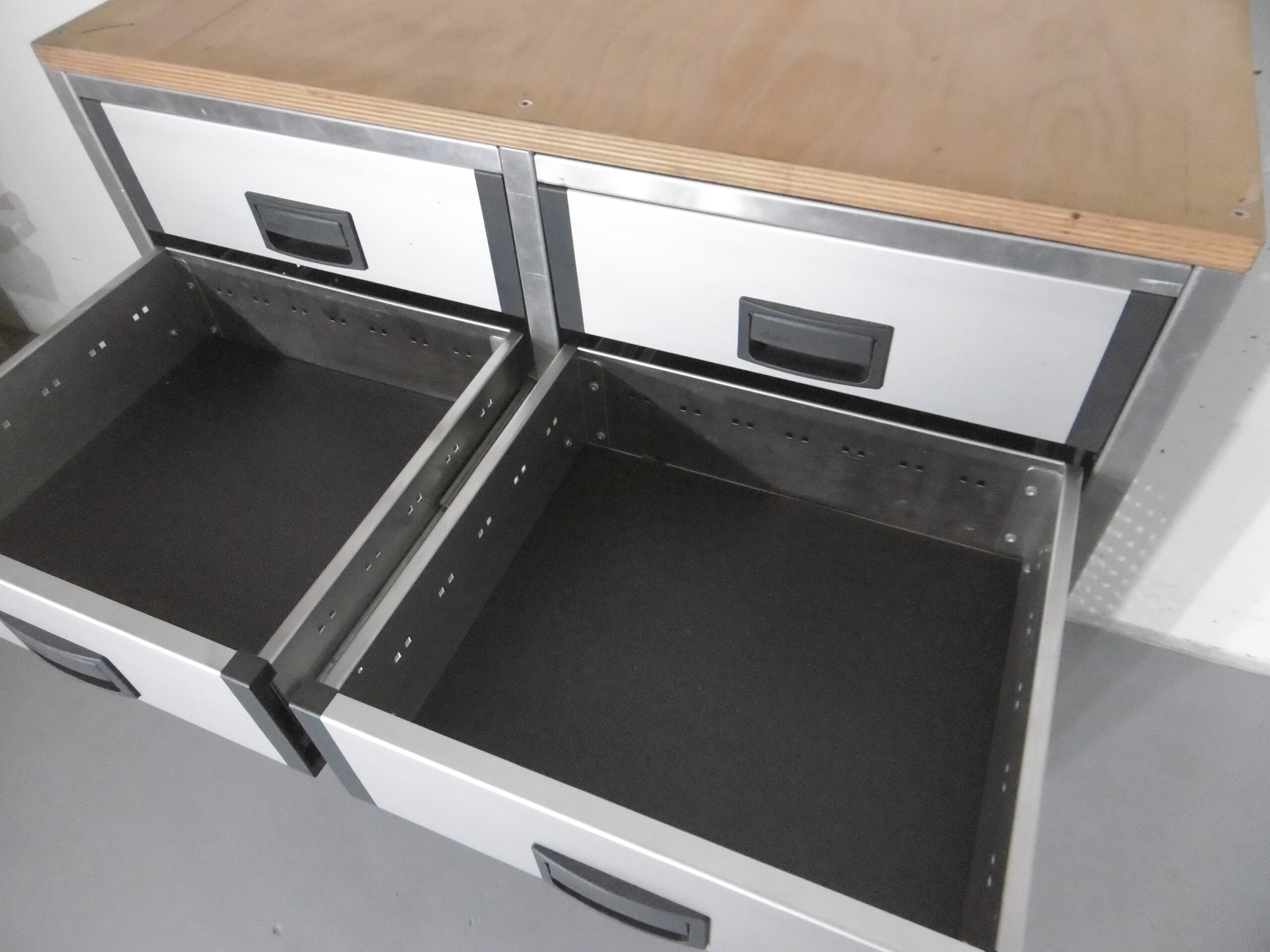 FES GmbH gebrauchte ALUCA Fahrzeugeinrichtung Werkbank Regalsystem Schubladen Sprinter Crafter MAN