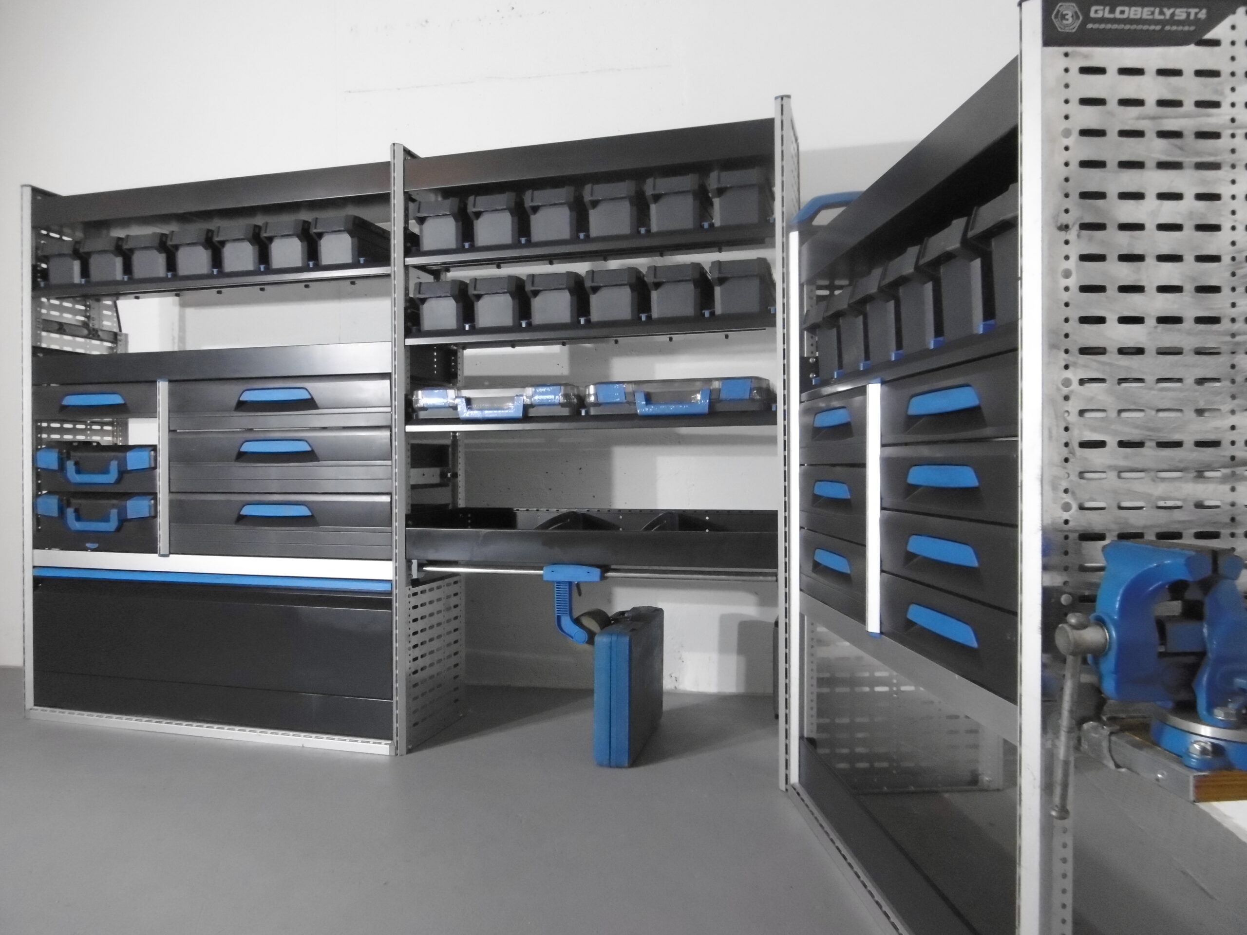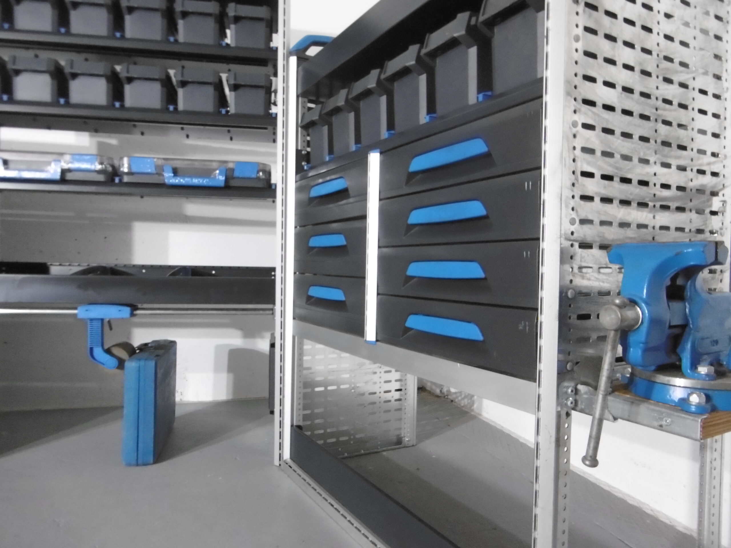 - herausziehbare Werkbank mit Schraubstock