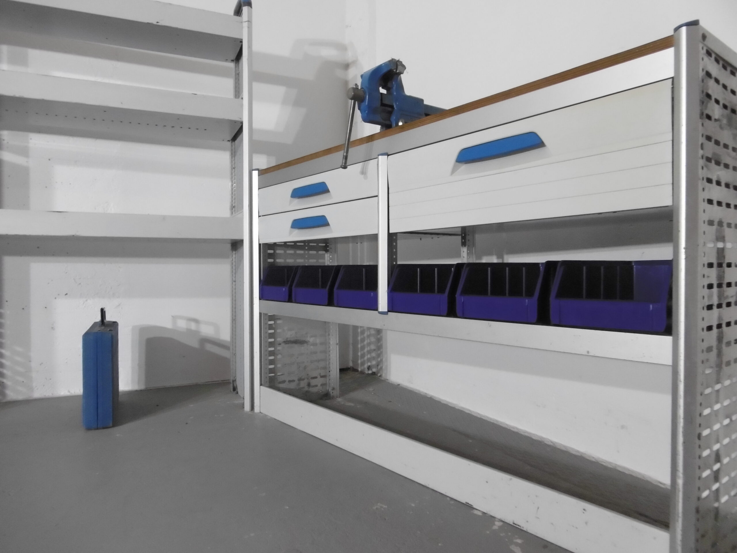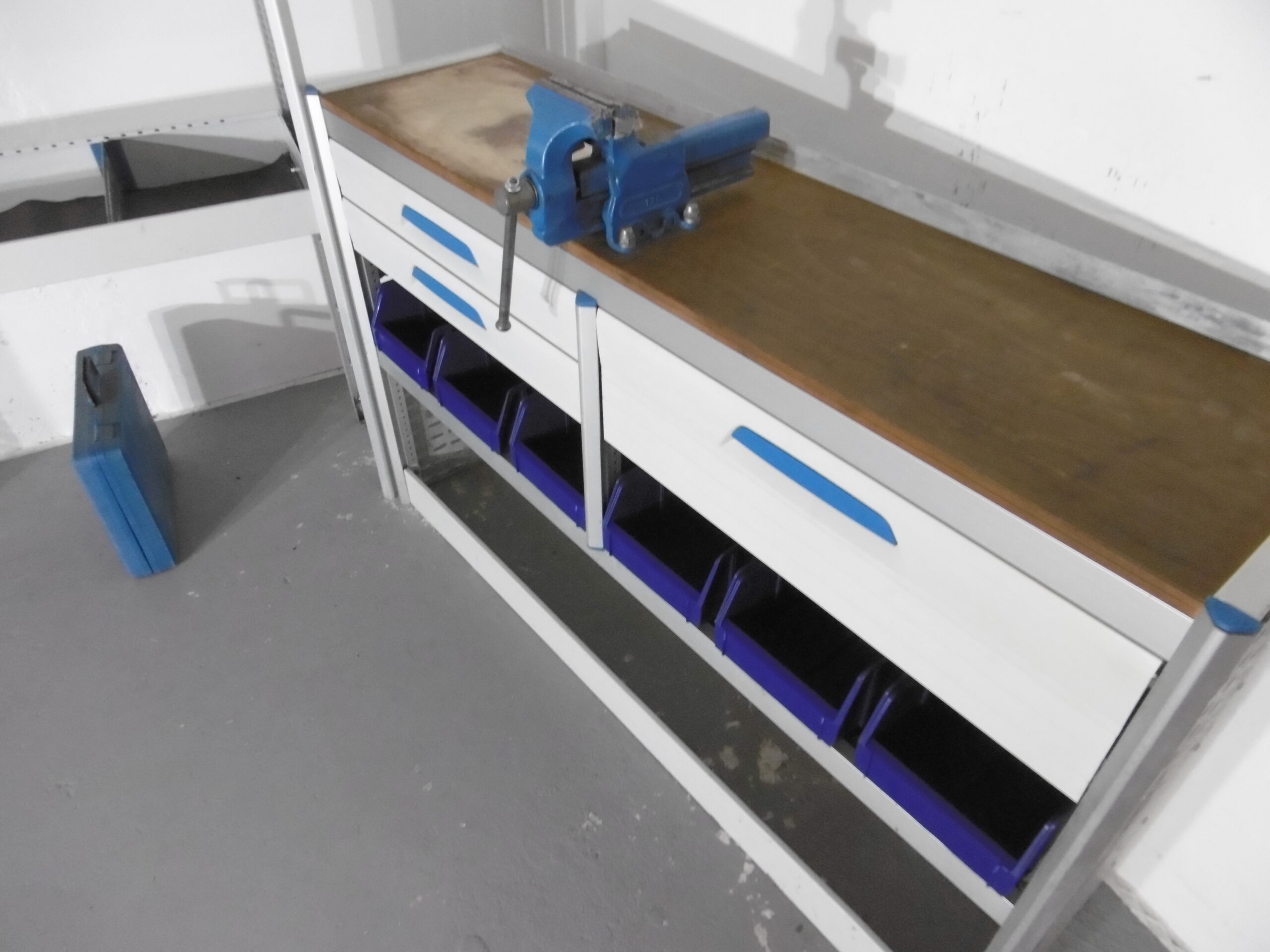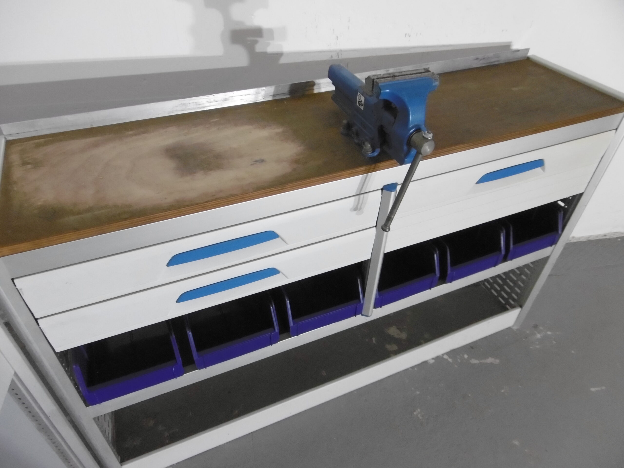- Werkbank mit Schraubstock
