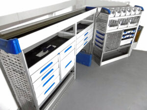 FES GmbH SORTIMO Fahrzeugeinrichtung gebraucht Van Regal Werkbank Regal Trafic T6 Custom Sprinter Transporter Regalsystem